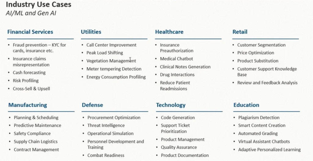 The below table shows practical ways in which the various forms of AI are being used by industries today.